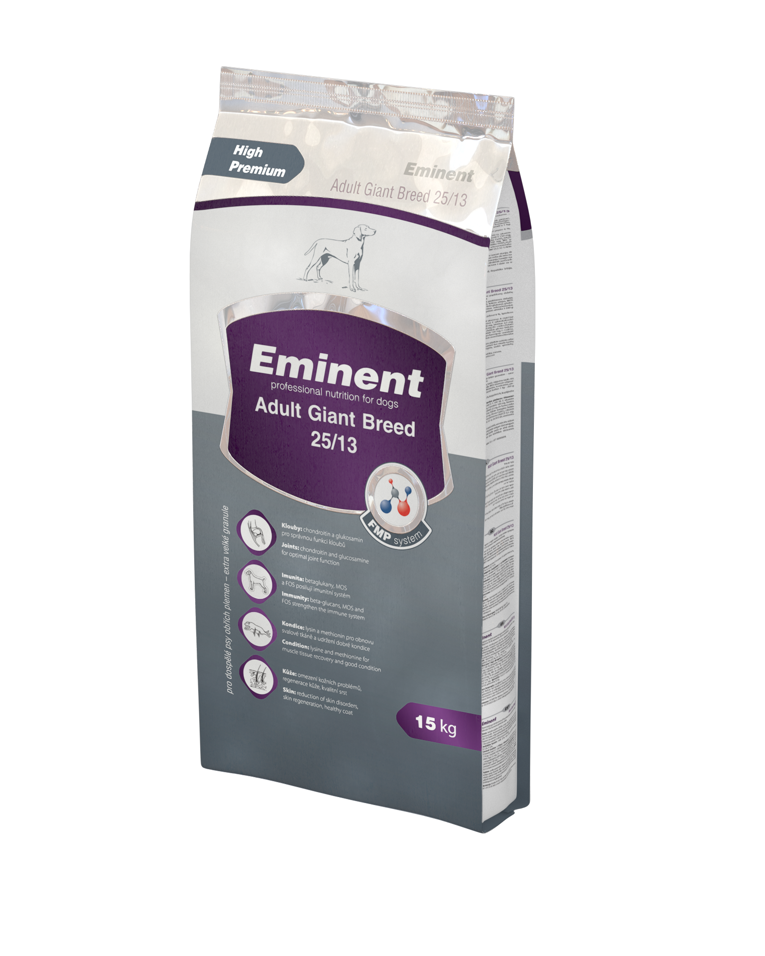 אמיננט היי פרימיום 25/13, מזון איכותי לכלבים בוגרים מגזעים גדולים. מכיל חלבונים איכותיים הניתנים לעיכול בקלות, תכולת שומן אידיאלית, מסייעים בשמירה על המפרקים ופעילות הלב