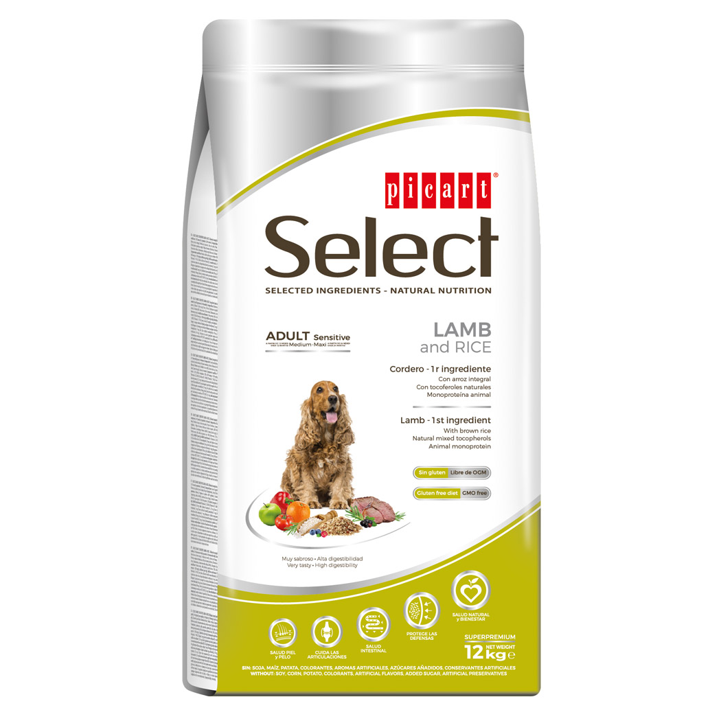 אוכל סופר פרימיום על בסיס כבש ואורז, לכלבים מגזע בינוני וגדול בעלי רגישות למזון, או אלרגיים לרכיבים נפוצים במזון לכלבים. נוסחה מתקדמת של חברת ®Picart הספרדית.